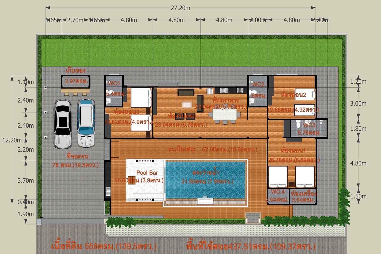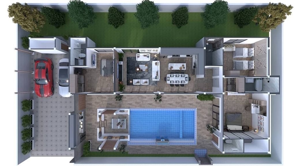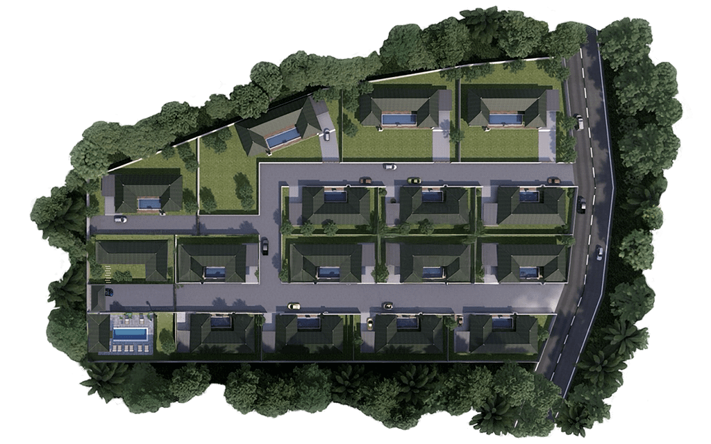 Each villa with three-bedrooms, share an identical design and layout and with your own unique land plot and view. Choose a style of finish such as interior tiles, and choice of furniture, e.g. single or double beds.